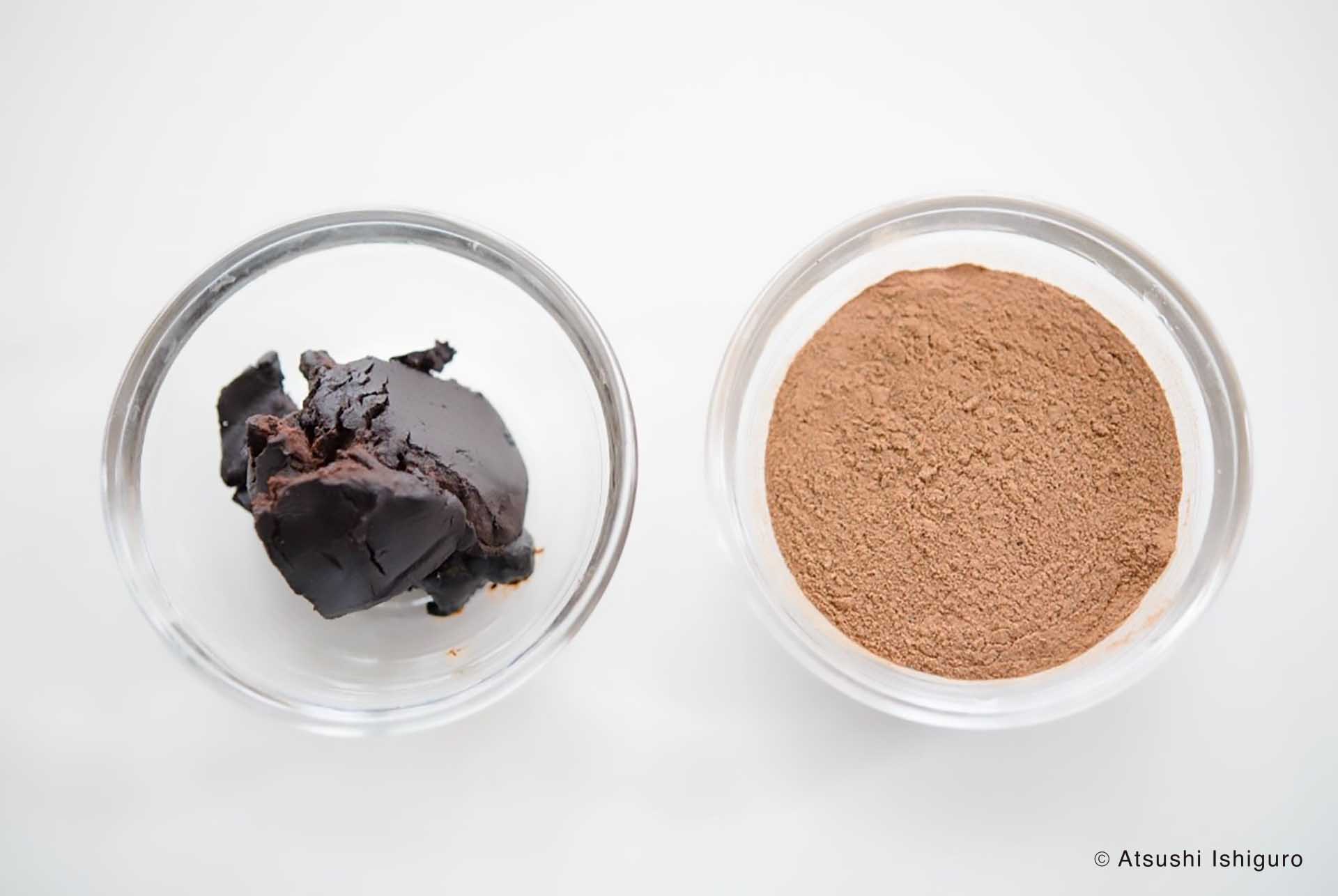 見た目は「八丁味噌」(左)、「甘くないさらし餡」(右)といった印象です。いずれも塩味は感じませんが、旨味は醤油や味噌などで感じるものに近いと思います。うっすらと茹でた豆の香りがします。